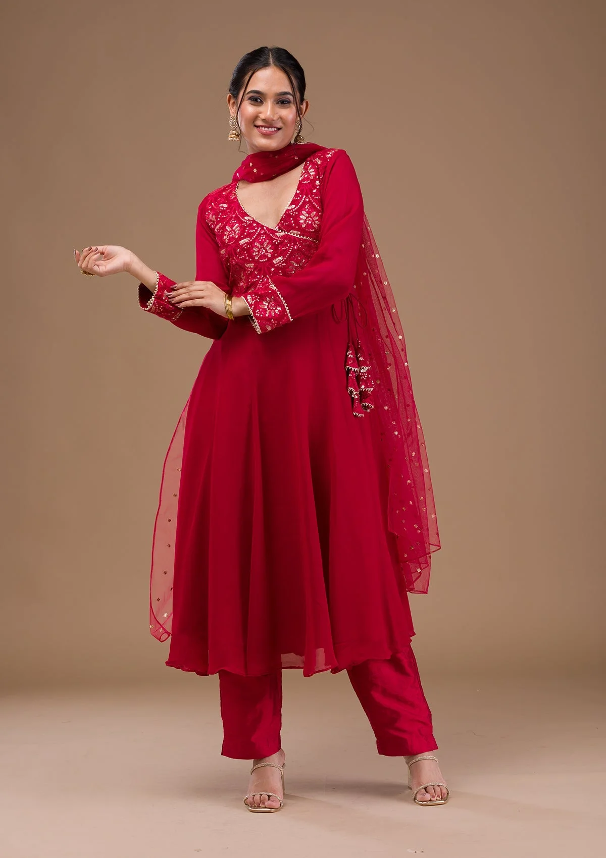 Maroon Zariwork Georgette Readymade Salwar Suit