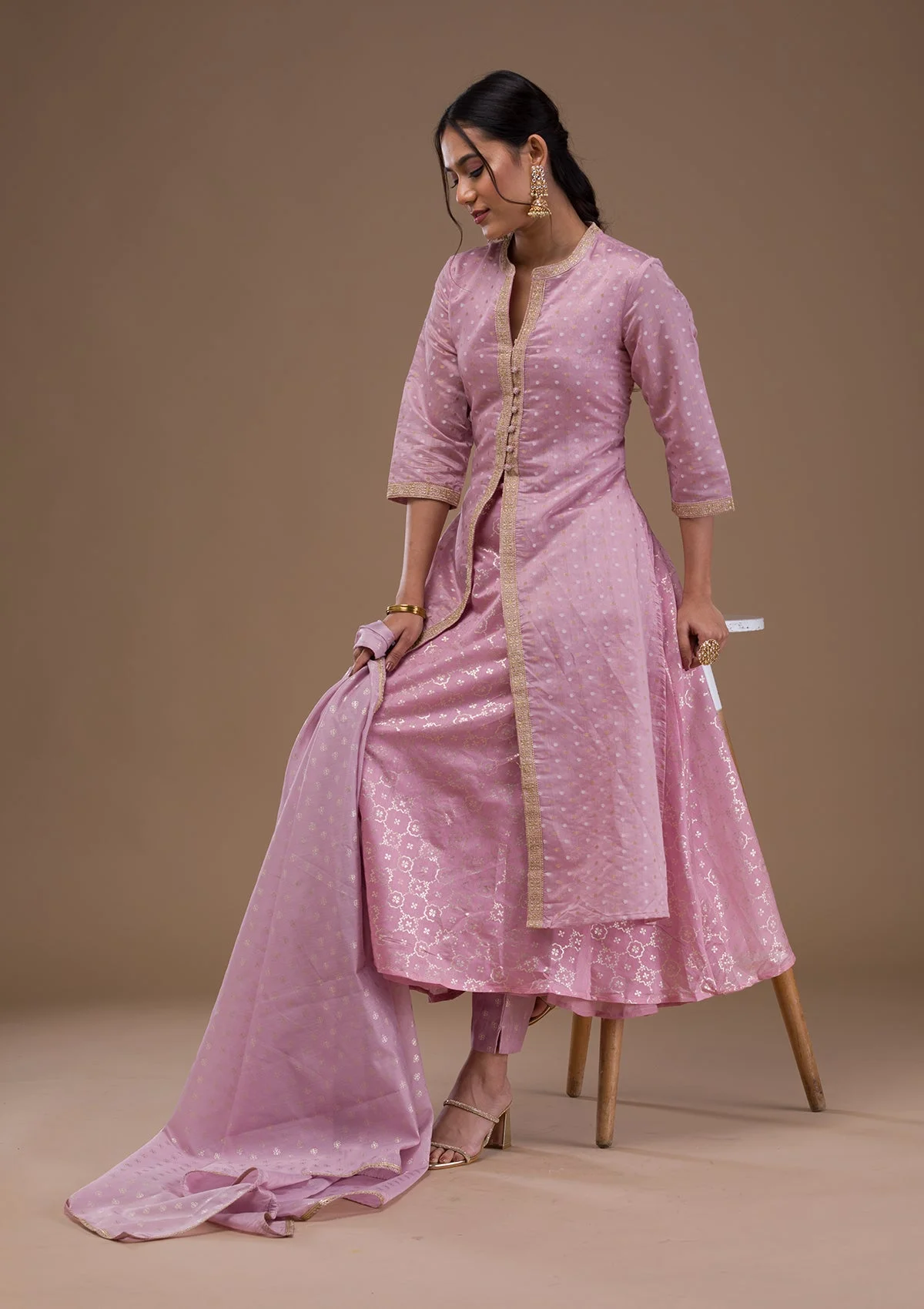 Mauve Zariwork Cotton Blend Readymade Salwar Suit